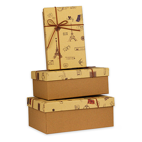 Набор коробок 3 в 1 из крафт бумаги Любимый париж,19х12х7-23х16х9 см ПП-5431*